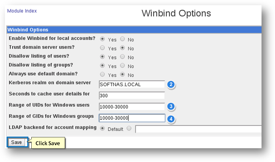 1. To do so, click the Winbind Options icon in the Global Configuration section.