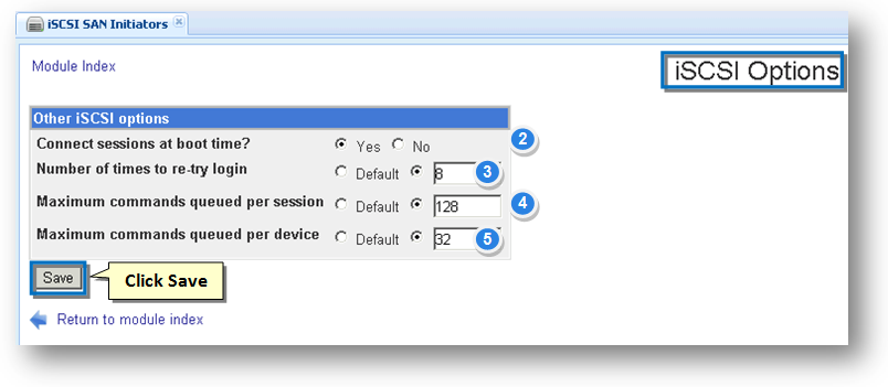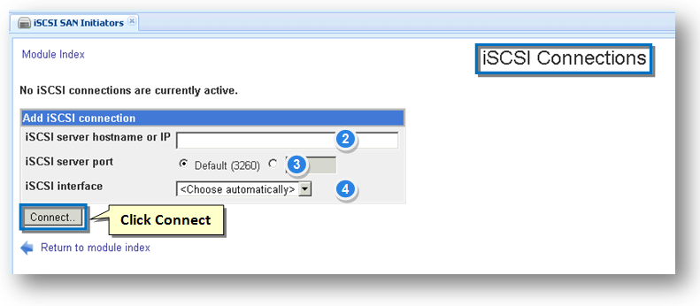 1. To configure iSCSI Interfaces sessions, click the iSCSI Interfaces button.