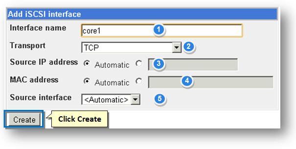 1. In the Add iSCSI Interface section, enter the name for the interface in the Interface Name text entry box.