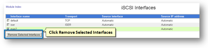 The Remove iSCSI interfaces page asking you to confirm the deletion of the selected interface will be displayed.