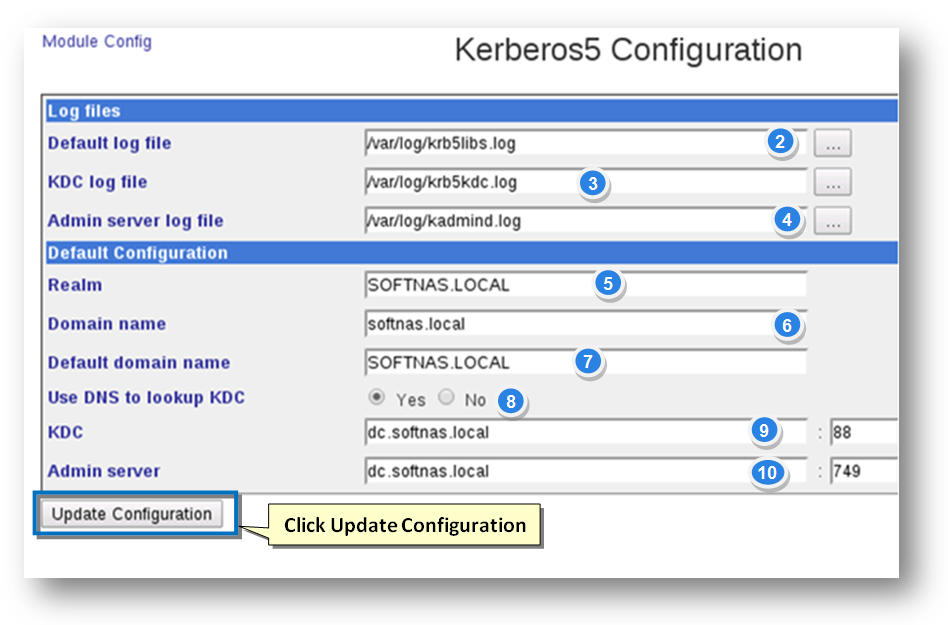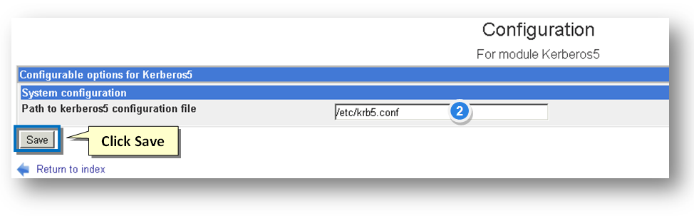 The Configuration for Kerberos5 Module page will be displayed.