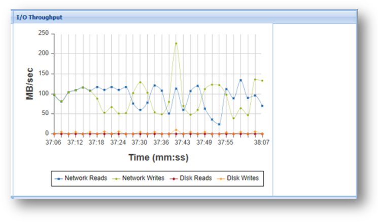 The I/O Throughput chart displays the network and disk I/O throughput statistics in MB/sec over time.