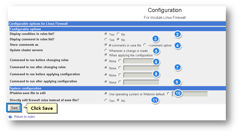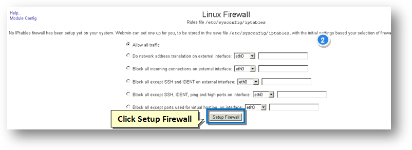 The Linux Firewall Rules page for Iptables will be displayed based on your initial settings.