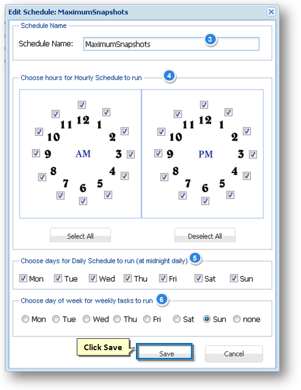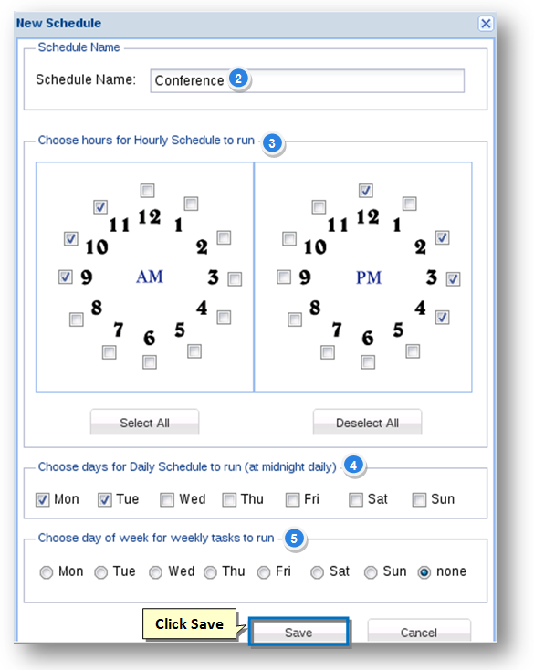 Note: To select all 24 hours, click the Select All button. To unselect all selected hours, click the Deselect All button.
