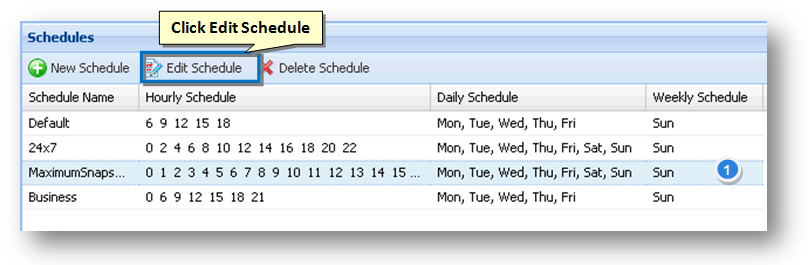 1. On the Schedules panel, select the schedule that you wish to edit.