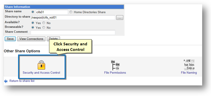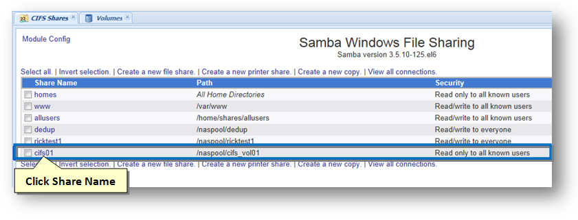 1. On the CIFS Shares panel, click the name of the CIFS share link.