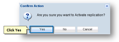 The Confirm Action message box asking you to confirm the activation of replication will be displayed.