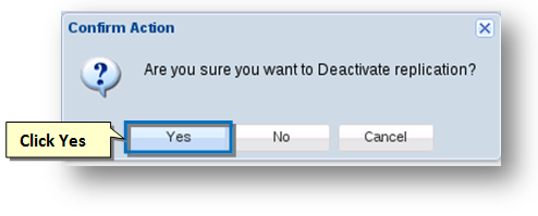 The Confirm Action message box asking you to confirm the deactivation of replication will be displayed.