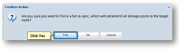 The Confirm Action message box asking you to confirm the force syncing of the replication will be displayed.