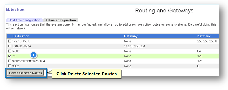 The Active Configuration section lists the routes that the system currently has configured. It allows you to add or remove active routes on some systems.