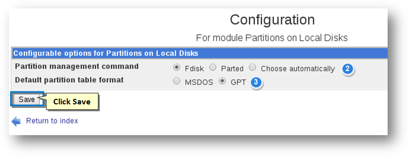 The Configuration for Module Partitions on Local Disks will be displayed.