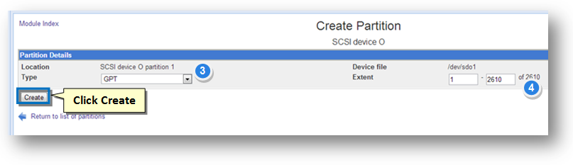 The Create Partition section will be displayed.