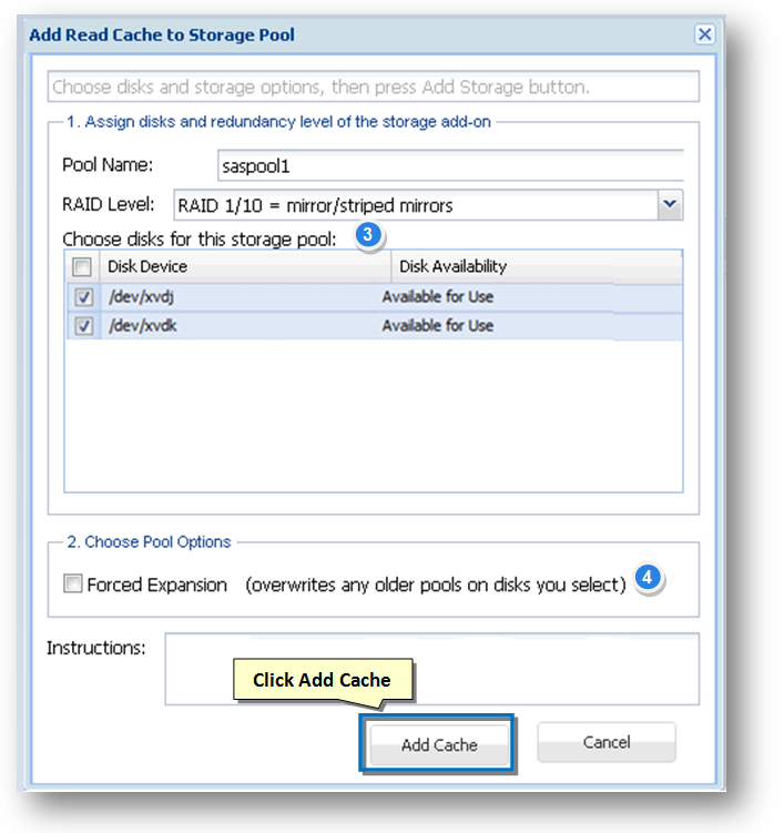 The Add Read Cache to Storage Pool dialog will be displayed.