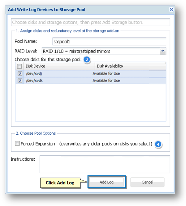 The Add Write Log Devices to Storage Pool dialog will be displayed.