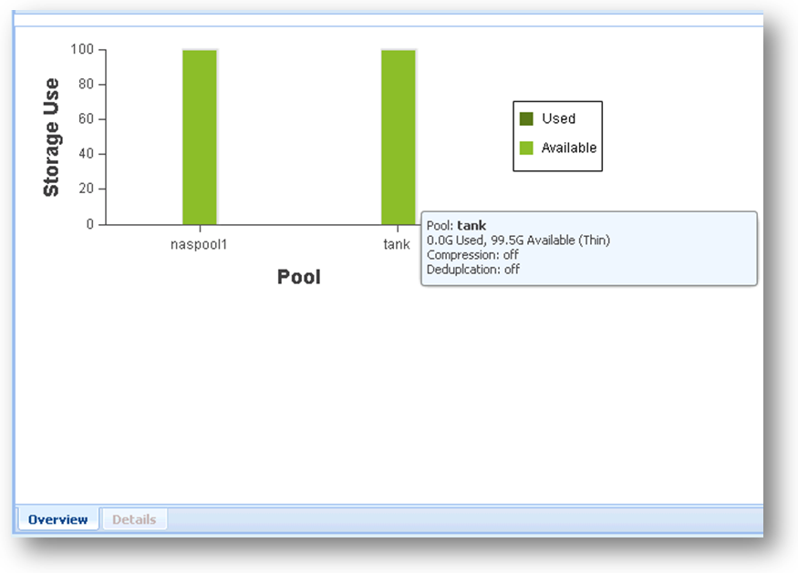 The Storage Usage Chart with a bar chart summarizing storage usage by pool will be displayed.