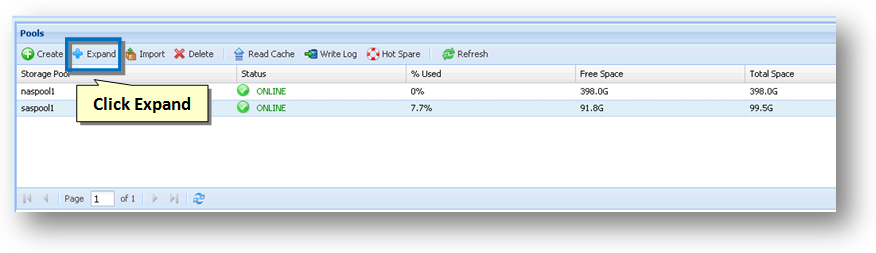The Storage Pools panel will be displayed with the list of all the existing storage pools that are already allocated.