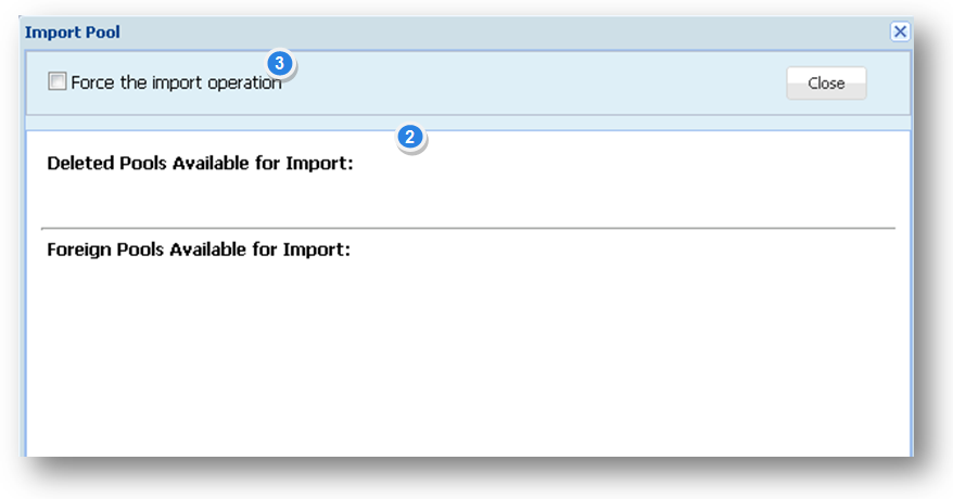 3. You will need to select the Force Import checkbox, to force the system to import foreign pools from another system.