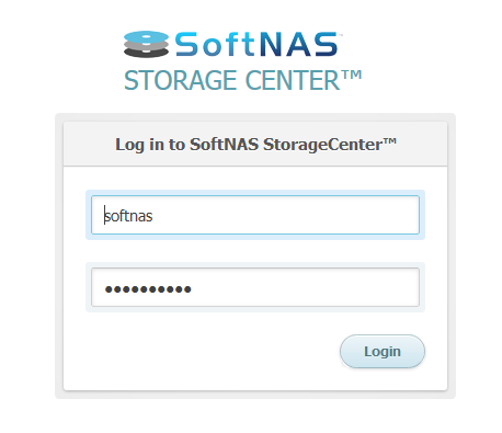 4. Enter the SoftNAS instance ID as the default password in the Password text entry box. The "softnas" account default password is automatically set to the "instance ID" upon initial boot of the appliance for the first time. For example, if your SoftNAS instance ID is "i-202efd38", then use this as the password.
