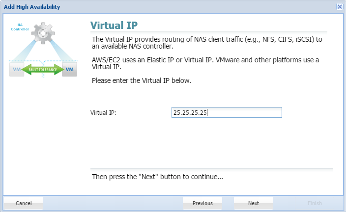 Provide a Virtual IP. This is a human-configured (chosen by you) IP address. It must be outside the CIDR block of the two SoftNAS instance IP addresses.